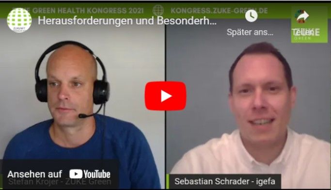 „Der Weg zur nachhaltigen Beschaffung – erst analysieren, dann optimieren“, darüber sprechen der Organisator von ZUKE Green Stefan Krojer und die Vorsitzende des igefa Nachhaltigkeitsrats Julia Del Pino Latorre zur Vorbereitung auf den ZUKE Green Health Kongress am 23. und 24. November 2021.